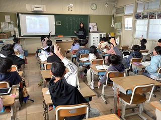 6年生外国語活動 My Best Memory 小学校の一番の思い出を伝え合いました。最後にALTの前で伝える側と聞く側のやりとりを聞いてもらいました。
