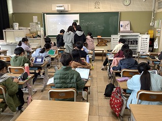 1年生情報アドバイザーにお越しいただいてプログラミングの授業を行いました。マウスに命令を出して、チーズのところにたどり着いたらOKです。