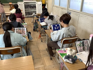 Esta é uma unidade de escrita para a aula de japonês do 5º ano, chamada "Esboçando com Palavras".Tomei notas com base em pontos como a aparência do animal, o que podia ser visto dele, o que estava ao seu redor e o que eu imaginei.