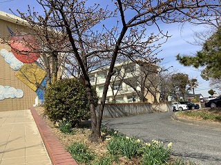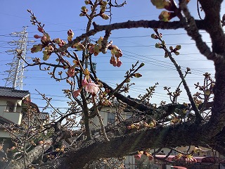 東門のカンザクラが一輪開花しました。この3連休は暖かくなる予報なので、火曜日にはピンクのかわいい花がたくさん咲いているかもしれませんね。春です…
