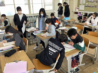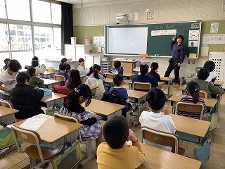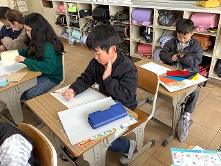 1年生国語 「ずうっと ずっと 大すきだよ」音読リレーをしました。今日は気持ちを込めて音読することがめあてです。登場人物の気持ちになって上手に読むことができていました。