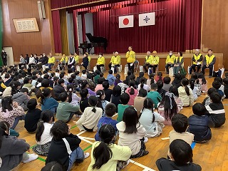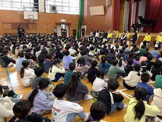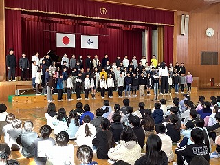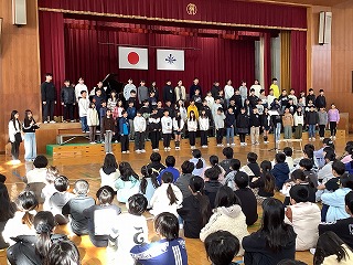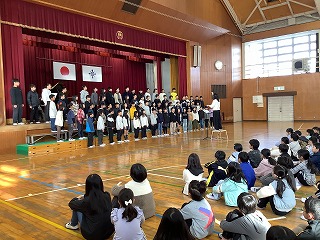 Os alunos do quinto ano apresentaram o coro que cantaram no Festival de Música da Escola Primária de Handa City para toda a escola.Todos os alunos ficaram cativados pelas belas vozes que ecoavam pelo ginásio.Os pequenos heróis foram incríveis hoje!