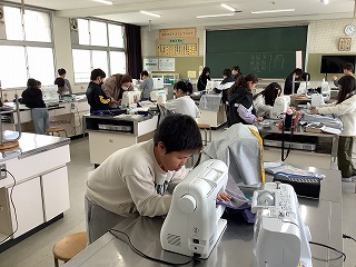 5年生家庭科 ミシンでエプロンを作っています。返し縫いも慣れてきました。