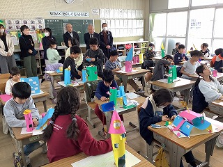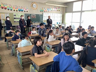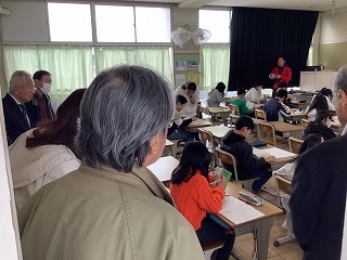 児童を代表して児童会会長が感謝の気持ちをお伝え、児童からの手紙とサクラソウをお渡ししました。全校児童で「みんなで歌おう~歌声と幸せがあふれますように~」を合唱し幸せな時間に包まれました。最後に地域の方から、「みんなの挨拶から元気をもらっています。」と感謝のお言葉をいただきました。地域の皆様、今後ともよろしくお願いいたします。