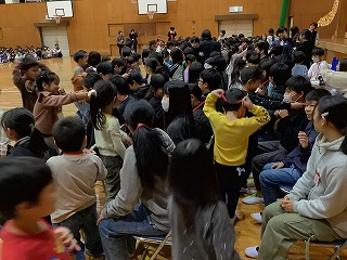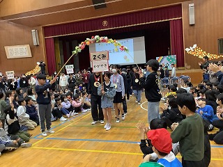 3時間目に体育館で「6年生を送る会」を行いました。1年生から5年生が6年生に心を込めた出し物のプレゼントに6年生は大喜びでした。6年生からもお礼の出し物があり、全校で6年生の卒業をお祝いすることができました。
