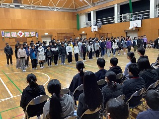 Realizamos uma "Festa de Agradecimento" para expressar nossa gratidão à comunidade local pelo apoio contínuo.O presidente do grêmio estudantil expressou sua gratidão em nome dos alunos e presenteou-os com cartas dos estudantes e prímulas.Todos os alunos cantaram "Vamos cantar juntos - Que as vozes da canção e da felicidade transbordem" e a atmosfera se encheu de alegria.Por fim, um morador local expressou sua gratidão, dizendo: "As saudações de todos me dão energia.Contamos com o apoio contínuo de todos na comunidade."
